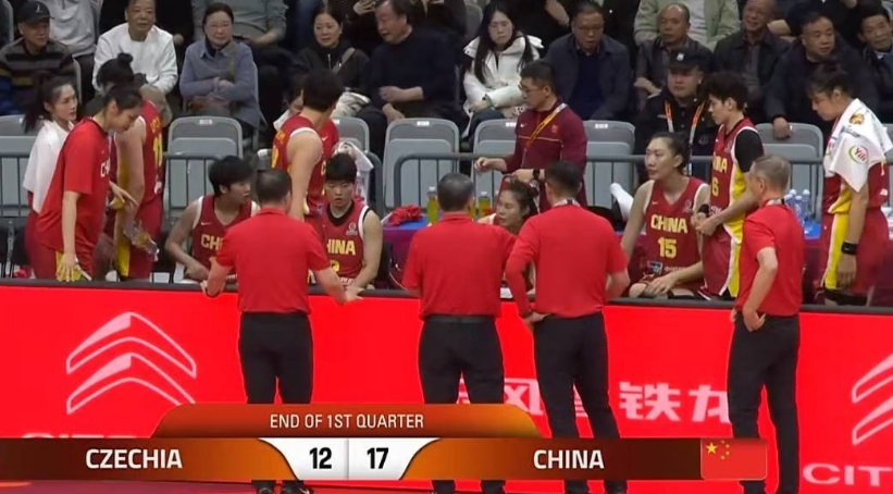上半场中国女篮37-30领先捷克女篮,双方外线准星均低迷,中国女篮三分10中1,捷克女篮三分14中1。