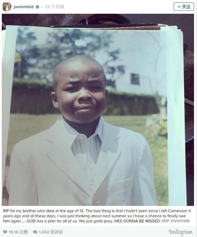 恩比德弟弟13岁时 因为车祸在喀麦隆不幸去世