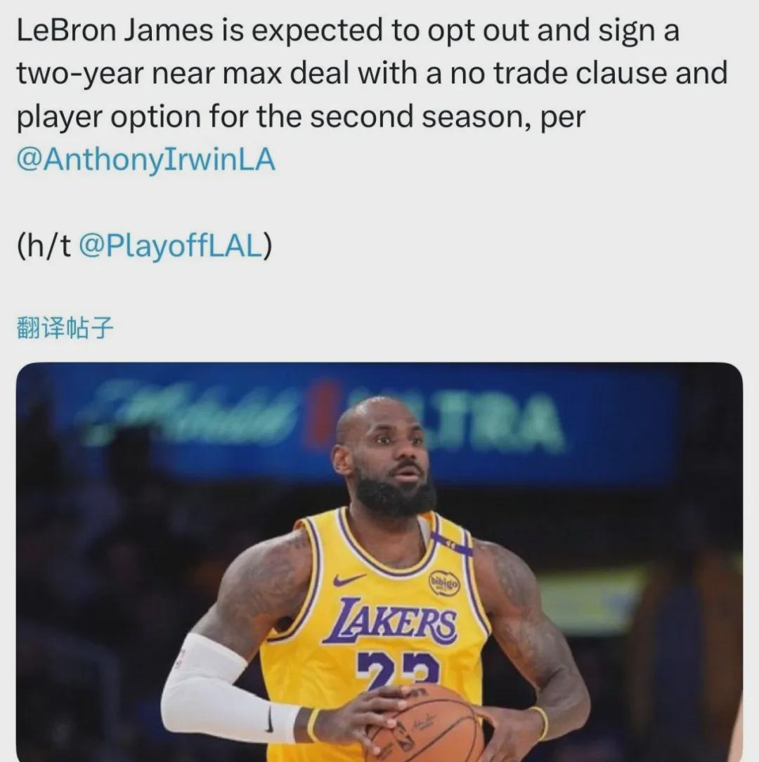 值得一提的是,40岁的詹姆斯今夏也可能跳出合同进入自由市场,但是为了与湖人签约接近顶薪的1+1新合同(第二年球员选项),且包含交易否决权。