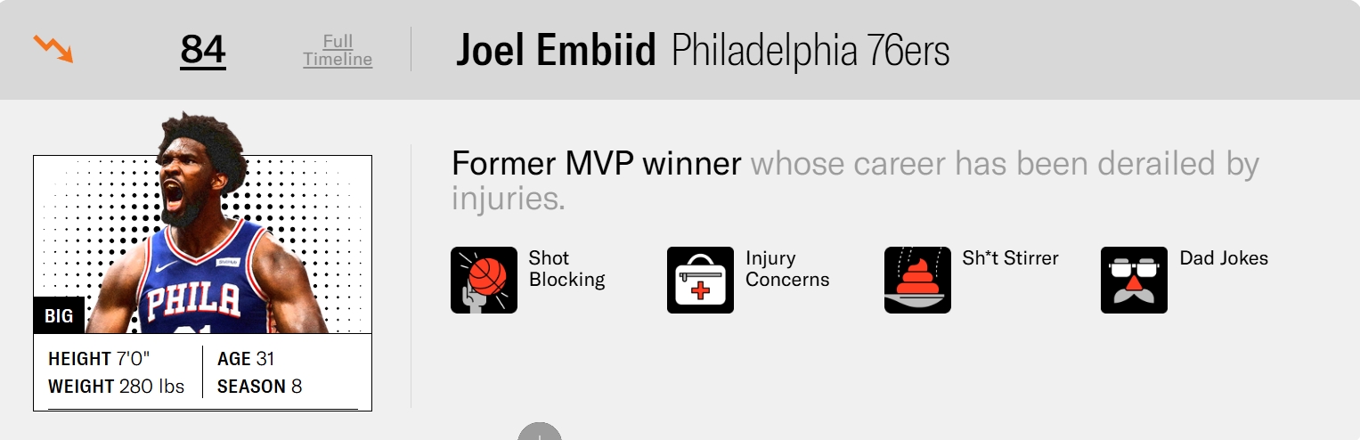 开云体育官网-只排第84?阿里纳斯:恩比德的影响力仍比排他前面一半的人要大
