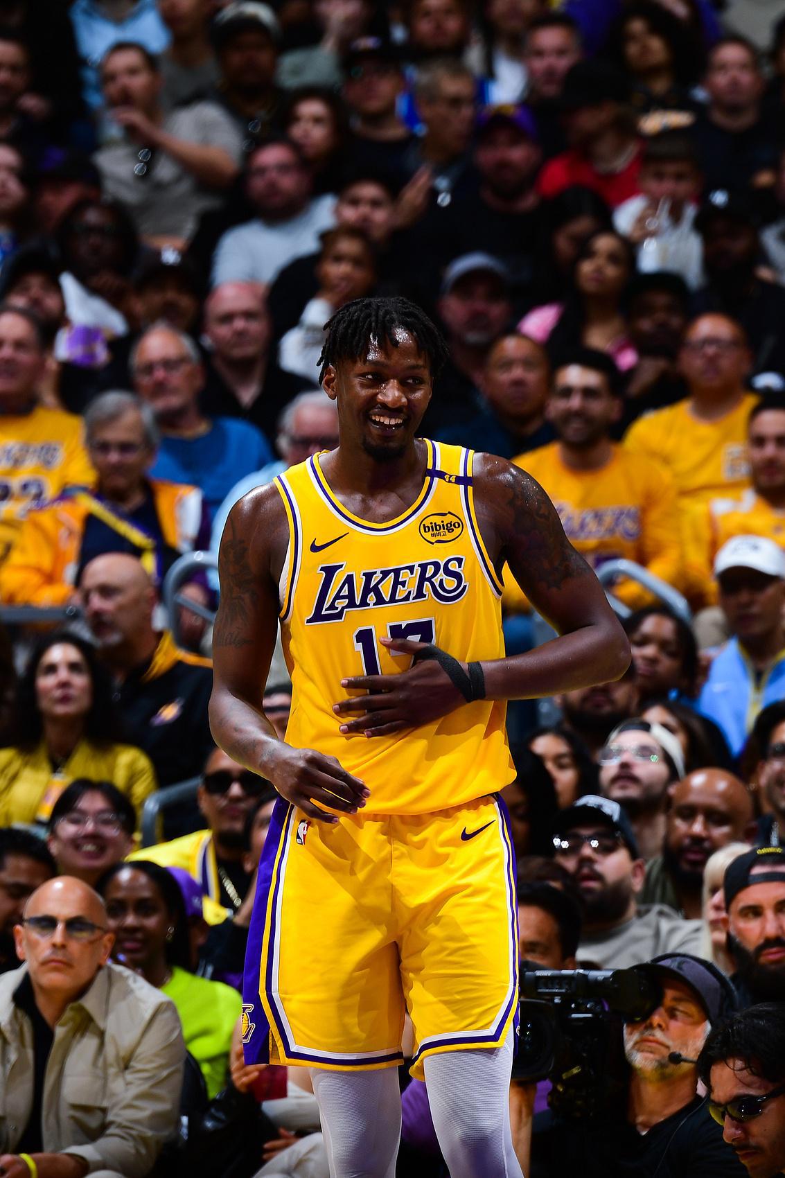 芬尼-史密斯现年32岁,2024年12月30日被篮网交易到湖人,为湖人出战43场常规赛,场均登场28.8分钟可以拿下7.9分3.6篮板1.4助攻;季后赛,芬尼-史密斯出战5场比赛,场均上场34分钟可以得到6.2分4.2篮板2.6助攻。