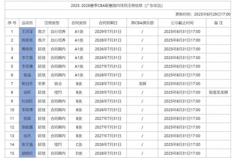 北京时间8月29日,广州男篮官方宣布21岁的年轻内线徐昕加盟,根据CBA官方公布的广东男篮注册信息显示,徐昕是续约4年B类合同后被租借到广州男篮。