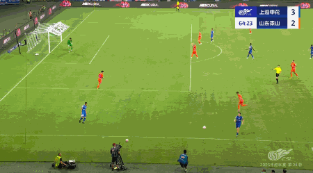 第64分钟,申花反击到前场的传球被对方解围,陈晋一非常机敏的快开边线球,和于汉超完成配合后他直接起脚传向禁区!徐皓阳快速前插头球破门!!3-2!!!僵持阶段,申花依靠着徐皓阳的赛季首球再度取得领先!!!