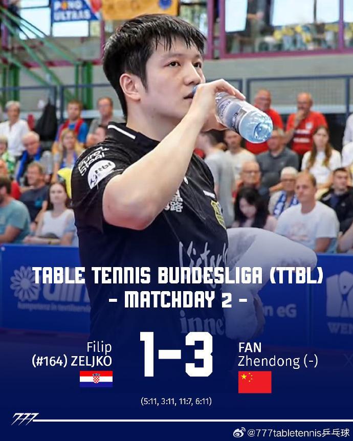 目前,萨尔布吕肯队大比分已经2:0领先。本场比赛,樊振东作为一单出战。