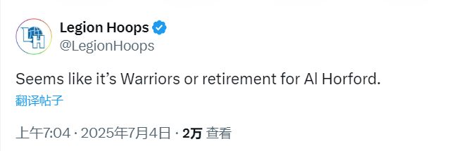随着湖人签下海耶斯,他们也基本退出了对霍福德的竞争。美媒表示,霍福德预计会加盟勇士或者直接选择退役。