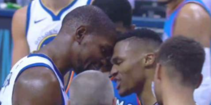 自从杜兰特选择在败给勇士的那个夏天,加盟对手之后,曾经的雷霆二少就变成了冤家对头,两人的每次交锋,总是能够擦出完全不同的火花。